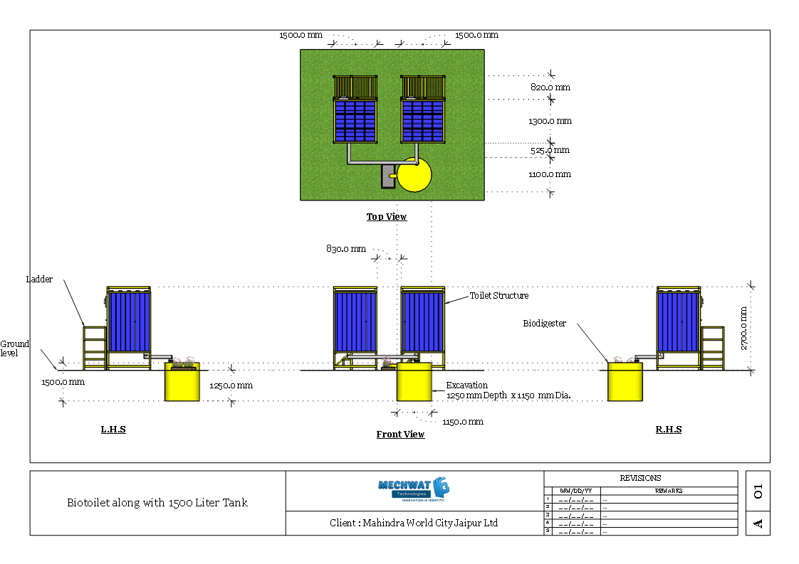 Bio-Toilets are a super structure of toilet with anaerobic biodegradation of organic waste by unique microbial consortium and works at a wide temperature range.Organic solid waste convert to Gases Like Methane, Carbon Dioxide, and Digested Organic Nutrient Contain Residual Water which will be further utilize for agriculture propose or else treated further for Secondary treatment known as Reed Bed System.