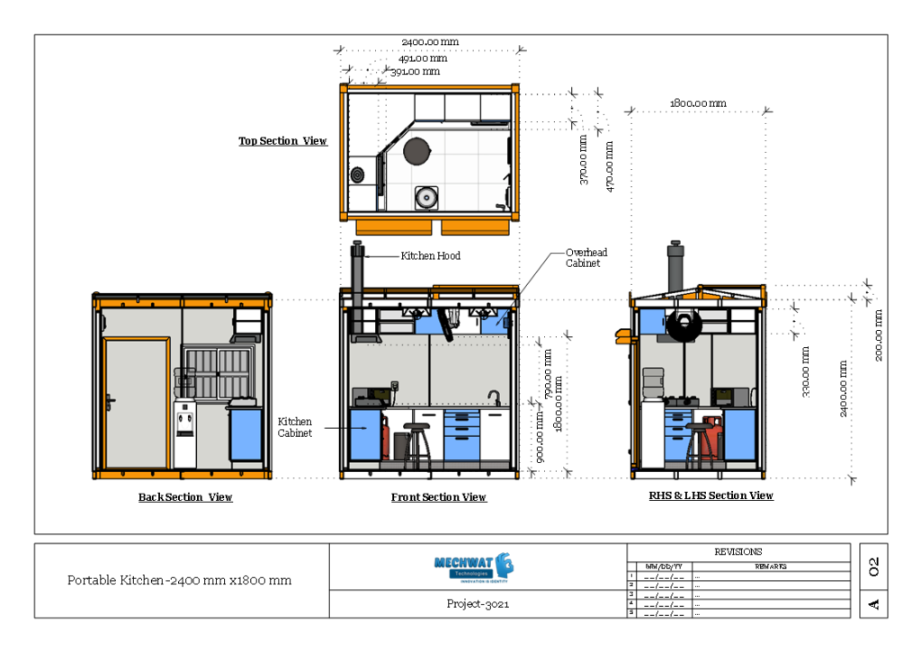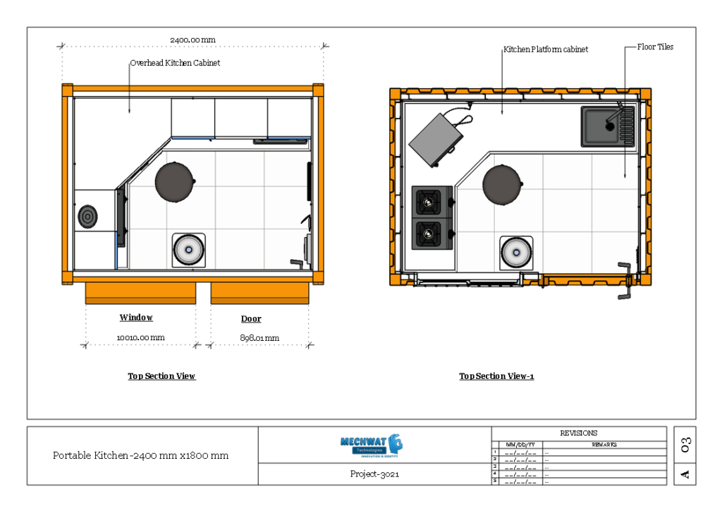 3Foundation/PlatformPrefab Kitchen is available in Portable/Flatpack System which is installed on precast RCC block and Steel platform. Also, Prefab Kitchen install on RCC Civil Foundation/Precast civil Platform on a solid surface.