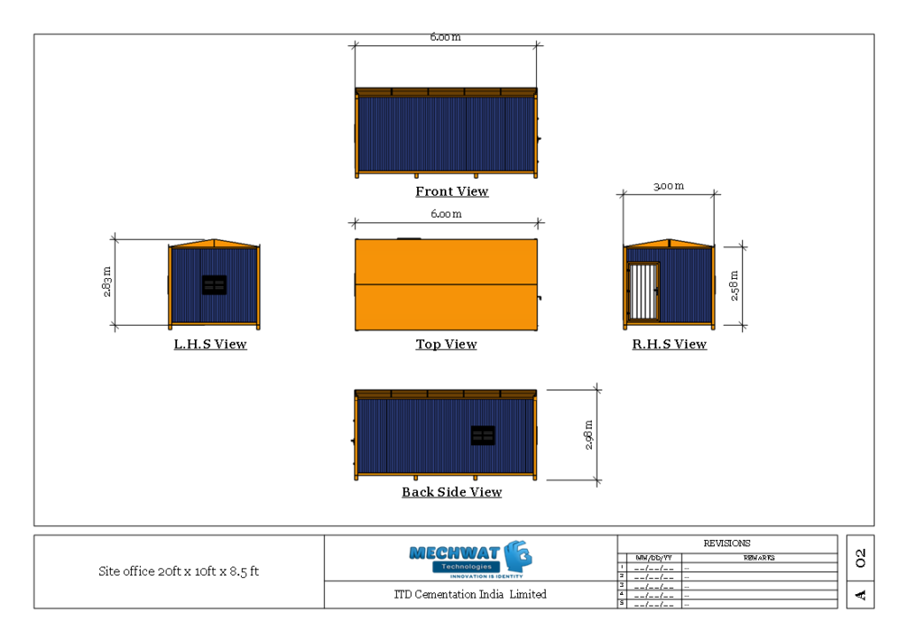 | 6 | Roof [self-draining type] | The roof of the shell will be manufactured from a 1.6 mm plain MS Sheet. |