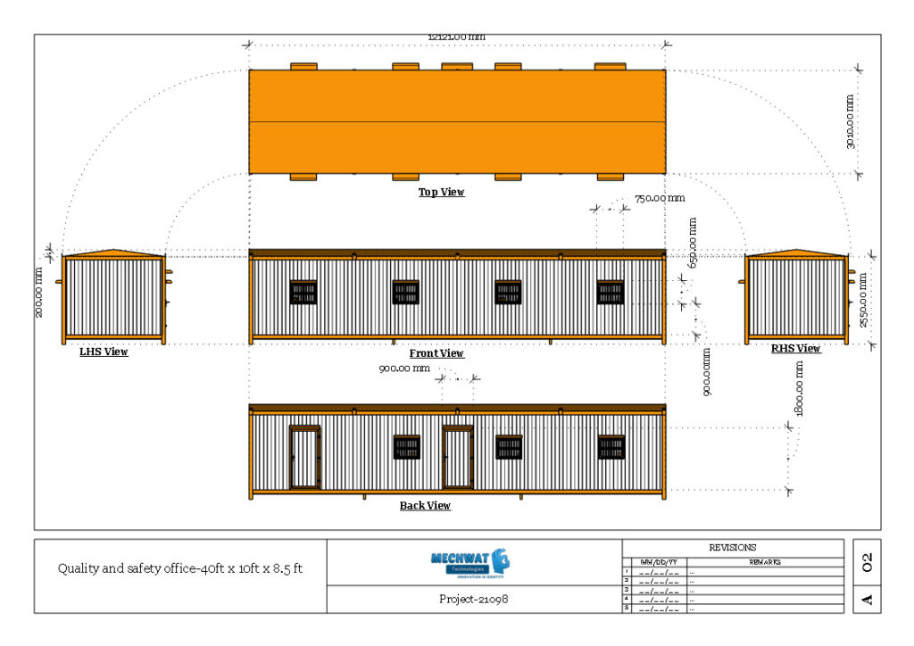 6Roof [self-draining type]The roof of the shell will be manufactured from a 1.6 mm plain MS Sheet.