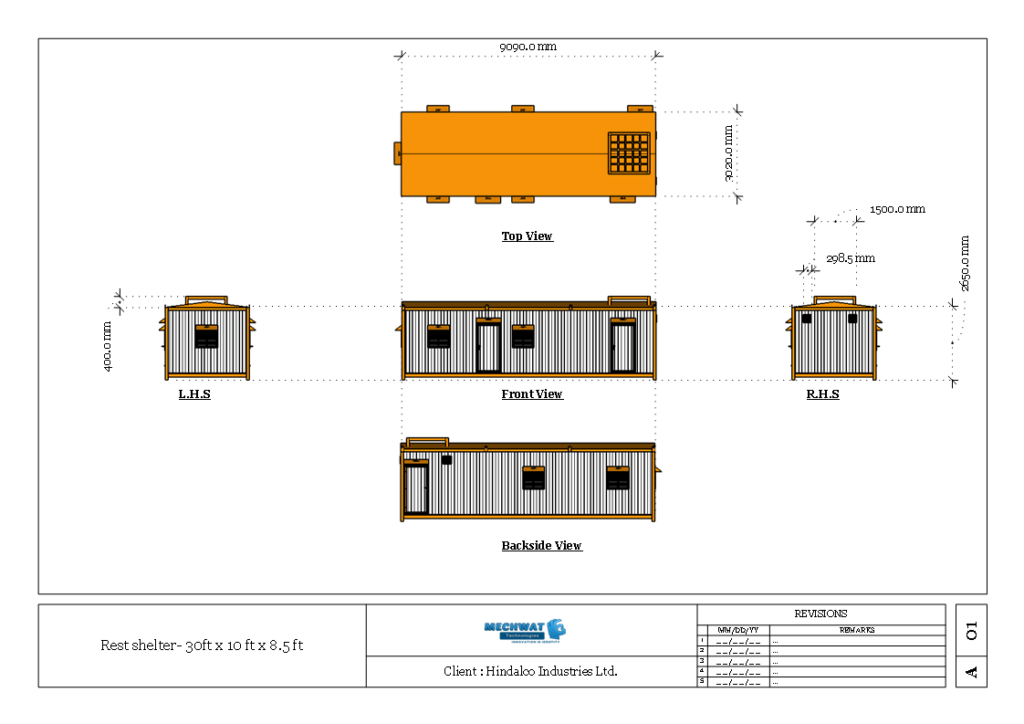 6Roof [self-draining type]The roof of the shell will be manufactured from a 1.6 mm plain MS Sheet.