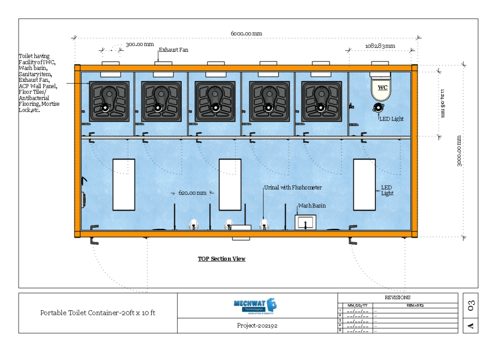 14Plumbing & Toilet FixturesIn the washroom, the container comes complete with all internal pipelines of CPVC or UPVC Along with Toilet fixtures Such as WC, Washbasin, Faucet, wheelchair, disabled WC, bath stand, grab bar, dispenser, Urinal, etc.