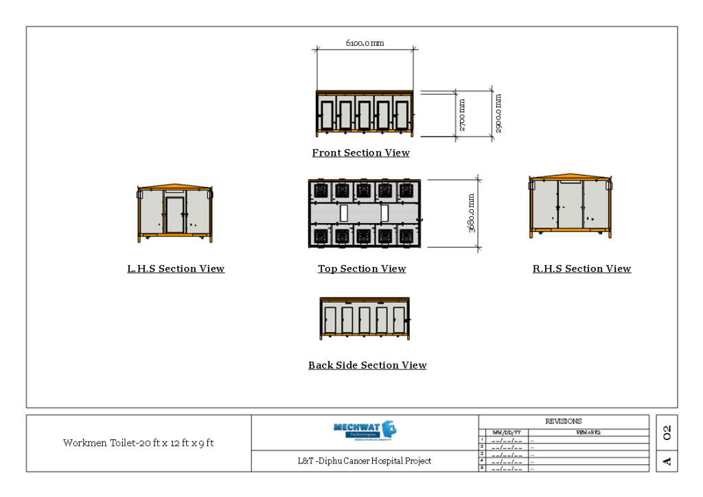 | 15 | Water Storage | Provision of the overhead tank provided on the restroom toilet container |