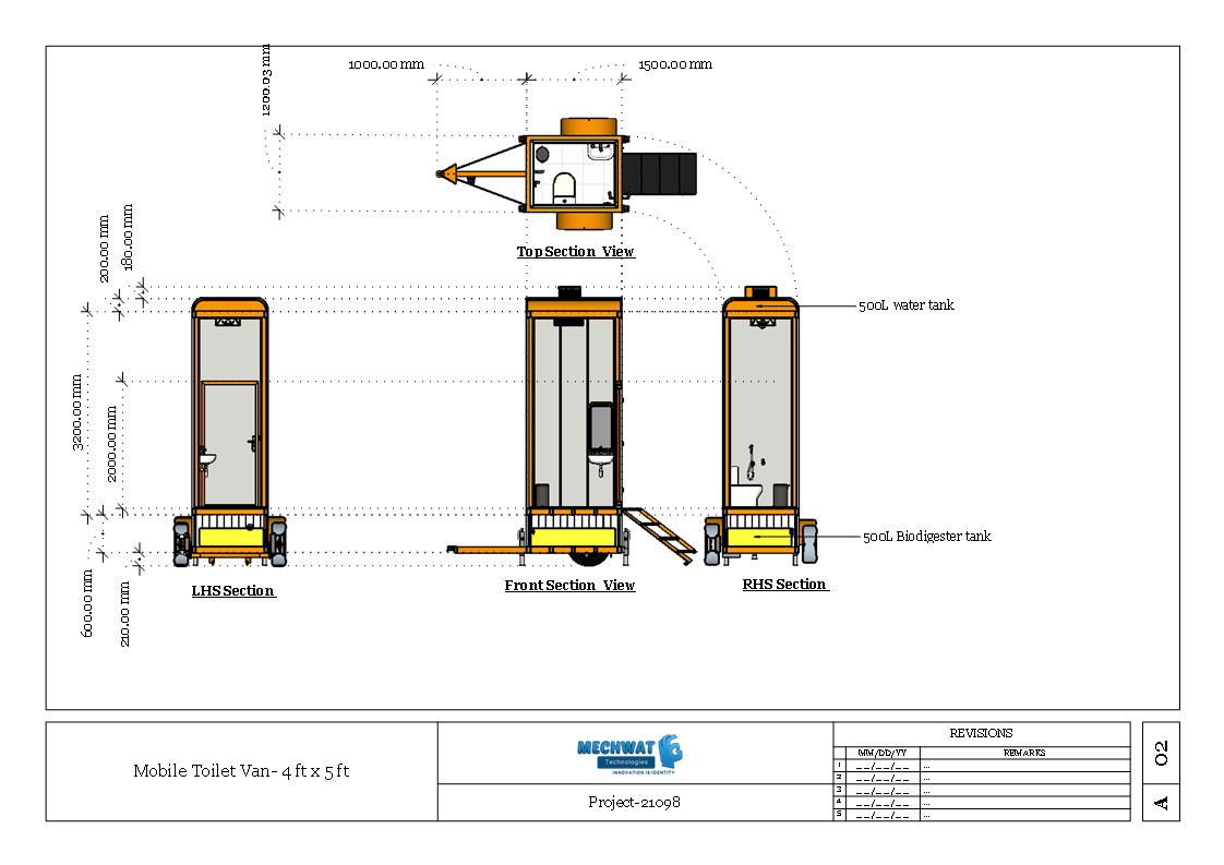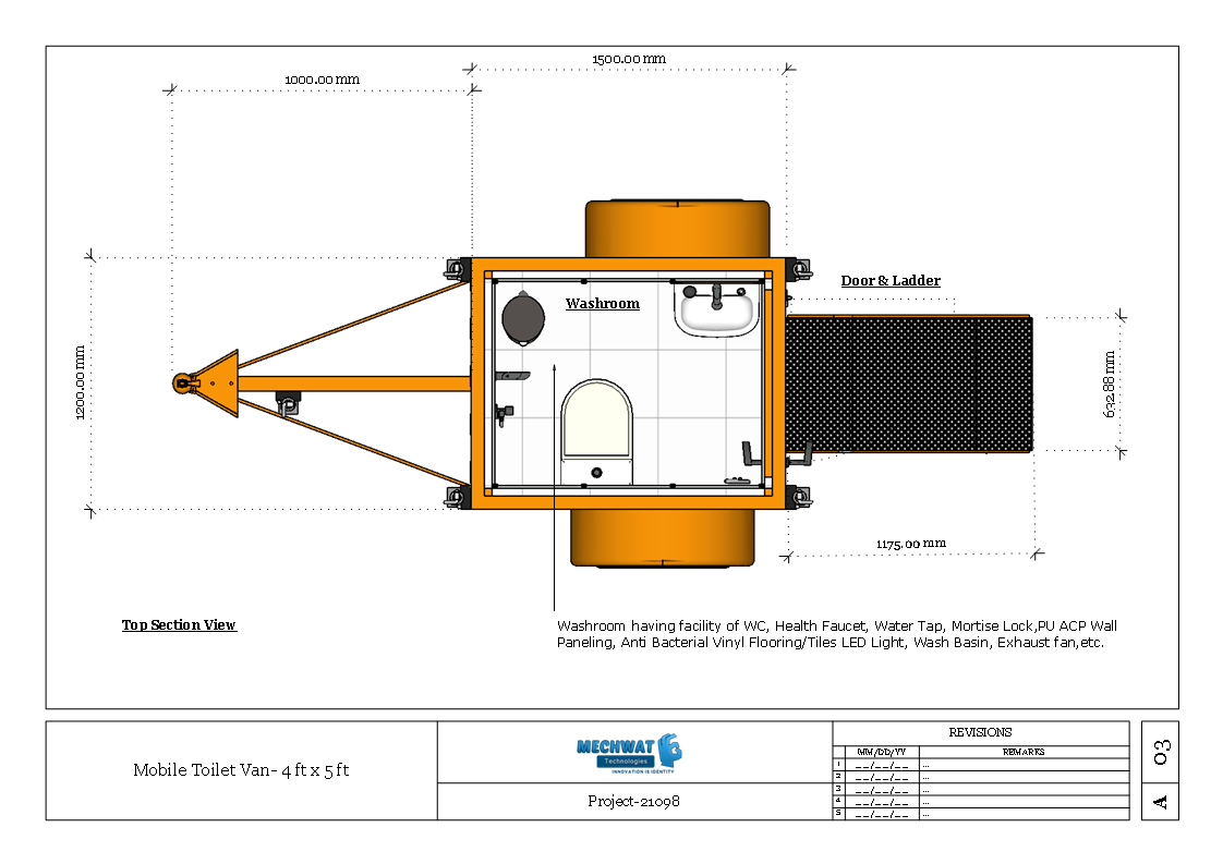 | Size of washroom | Gents : [ L x W x H]mm : [1500 mm x 1200 mm x 3000 mm] |